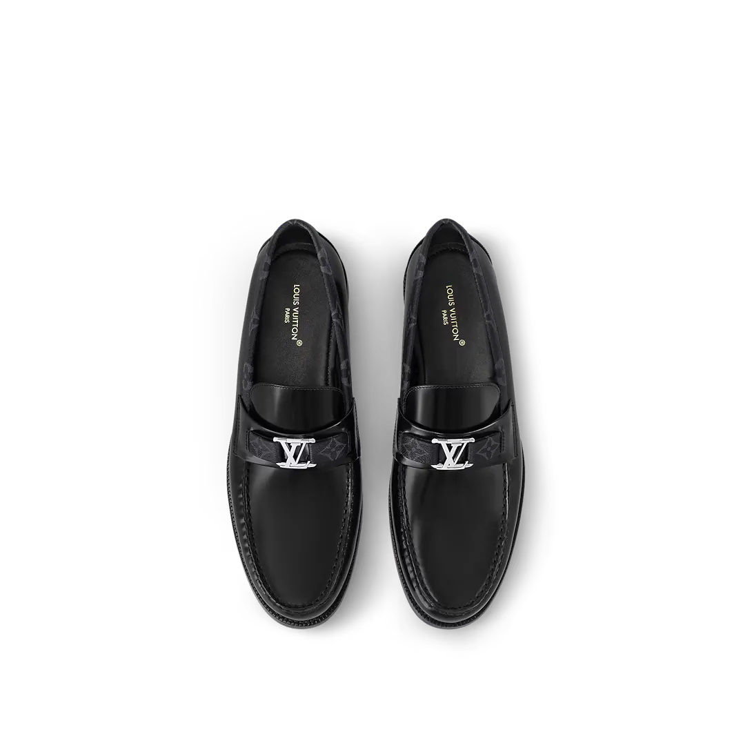 Crafted from premium glazed calf leather and Monogram canvas, the LV Major Loafer is a blend of luxury and craftsmanship. Each pair features a hand-stitched vamp, a meticulous process that takes one hour per shoe. The Blake construction ensures flexibility, while the leather and rubber outsoles provide durability and comfort. Adorned with the iconic LV Initials accessory, this loafer adds a sophisticated touch to any wardrobe. Made in Italy, it reflects timeless elegance.